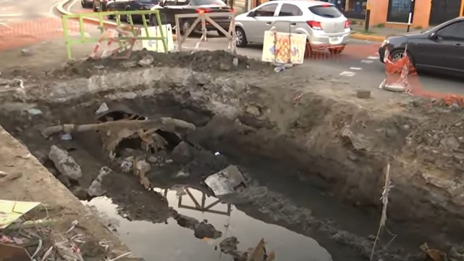 El asfalto se derrumbó tras la corrosión de caños metálicos centenarios, donde filtraciones cloacales socavaron progresivamente el suelo hasta provocar el colapso total de la carpeta vial. El canal indicó que la rotura se produjo el pasado 7 de julio. El pozo, que según los vecinos tiene una profundidad de entre 1,70 y 1,80 metros y ocupa unos 10 metros de largo por 3 de ancho, vuelve intransitable el sector y restringe el paso vehicular en una vía clave para la circulación local.