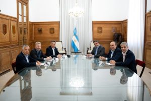 Del encuentro participaron el jefe de Gabinete, Guillermo Francos; y los ministros de Interior, Lisandro Catalán; y de Economía, Luis Caputo, junto con los gobernadores Alfredo Cornejo (Mendoza), Rogelio Frigerio (Entre Ríos) y Leandro Zdero (Chaco).