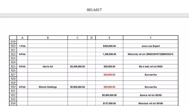 Según la documentación, la transferencia provino del fideicomiso Aircraft Guarantee Corp que gestionaban Machado y Mercer-Erwin bajo un esquema Ponzi (una estafa que comercializaba aviones que no existían). Este esquema habría defraudado US$350 millones, según estimaciones de los fiscales.