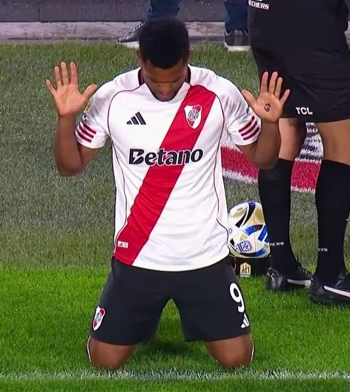 Así, el festejo de Borja quedó trunco. Es que, cuando ingresó por Facundo Colidio en el inicio del segundo tiempo, al ensayar su habitual plegaria, mostró en una de las palmas el número 63 escrito. ¿Qué significa esa cifra? De haber anotado, el punta hubiera alcanzado esa cantidad de goles en el club y se hubiese convertido en el máximo anotador colombiano del Millonario. Pero la correcta decisión del VAR impidió ese récord, al menos por ahora.
