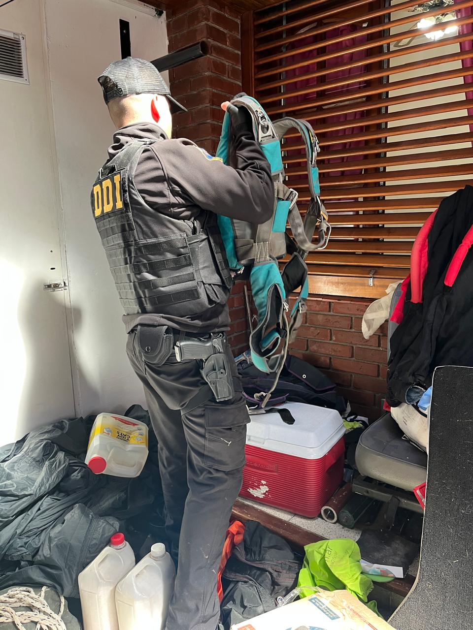 El material incautado incluyó una cámara de fotos Canon modelo EDS 7D, una cámara GOPRO con memoria de 32 GB, una memoria externa Toshiba, otra marca WD, un pendrive, una cámara deportiva HD 1080P, diez paracaídas de distintas marcas y modelos con fechas de fabricación y números de serie detallados y un celular Motorola G30 con tarjeta micro SD de 16 GB. Además, se llevaron dos sellos que consignan al hombre como delegado deportivo zonal e instructor de paracaidismo, otra memoria externa HGST, una notebook HP y un paracaídas Flexon Dual Prachute Container registrado con fecha de fabricación febrero de 1995.
