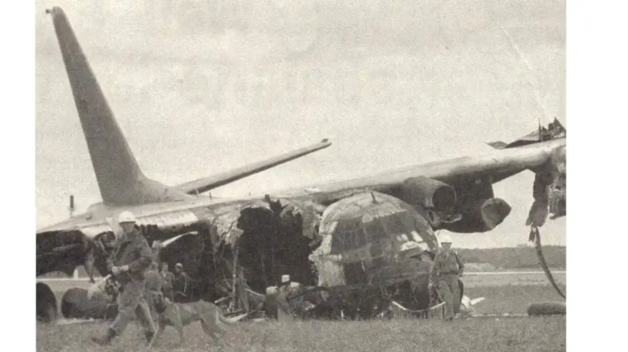 El resultado fue catastrófico. Algunos relatos de sobrevivientes hablan de una repentina pérdida de control, otros de un fuerte tirón, y todos describen la visión de la pista “levantándose” en un hongo de tierra, concreto y humo negro. La onda expansiva golpeó al avión que, a unos 12 o 15 metros de altura, perdió parte del ala derecha, el timón de dirección y uno de sus motores, incendiándose de inmediato.