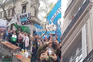 Las inmediaciones de la casa de la expresidenta Cristina Kirchner, en el ya mítico San José 1111, en el barrio porteño de Constitución, se convirtió en el punto de encuentro de cientos de militantes peronistas y kirchneristas, que fueron a acompañar a la exmandataria, a la espera del resultado de los comicios.