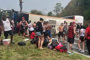 Un micro que transportaba hinchas del Flamengo de Brasil volcó este lunes en la autopista Presidente Dutra, cerca de Barra Mansa, en el Estado de Río de Janeiro. Los “torcedores” viajaban rumbo a Buenos Aires para asistir al partido de revancha por la semifinal de la Copa Libertadores contra Racing Club.