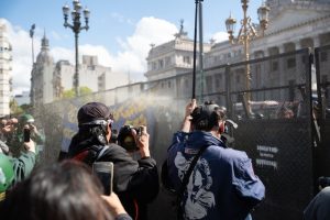 Hacia las 15.30, un grupo de jubilados tiró parte de las vallas que bloqueaban la avenida. La respuesta fue inmediata: efectivos de la Policía de la Ciudad reforzaron el operativo, aunque no avanzaron sobre los manifestantes. No hubo dispersión, pero sí un mensaje claro, el espacio público está militarizado. Además, las fuerzas detuvieron a una persona sobre la Av. Hipólito Yrigoyen, identificada como Luis Fernando Ochoa.