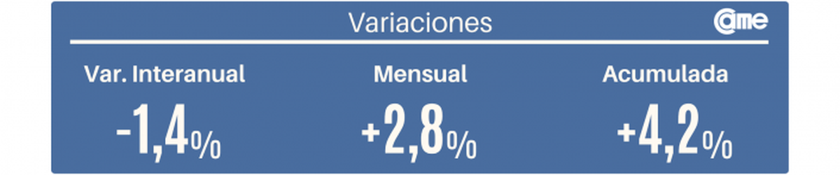 En octubre, las ventas minoristas pymes registraron una variación interanual de -1,4% a precios constantes. En la comparación mensual desestacionalizada, se observó un incremento de 2,8%. En lo que va del año, las ventas acumulan un aumento interanual de 4,2%.