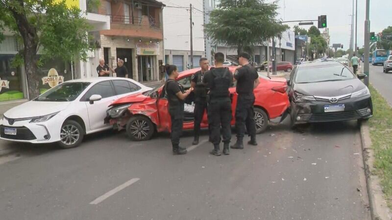 Dicha maniobra desembocó en la colisión contra un Toyota negro que circulaba por el carril izquierdo. El trayecto de impacto no terminó ahí, ya que “de rebote me la pone a mí”, relató el dueño del vehículo blanco, que permanecía estacionado sobre Eva Perón.