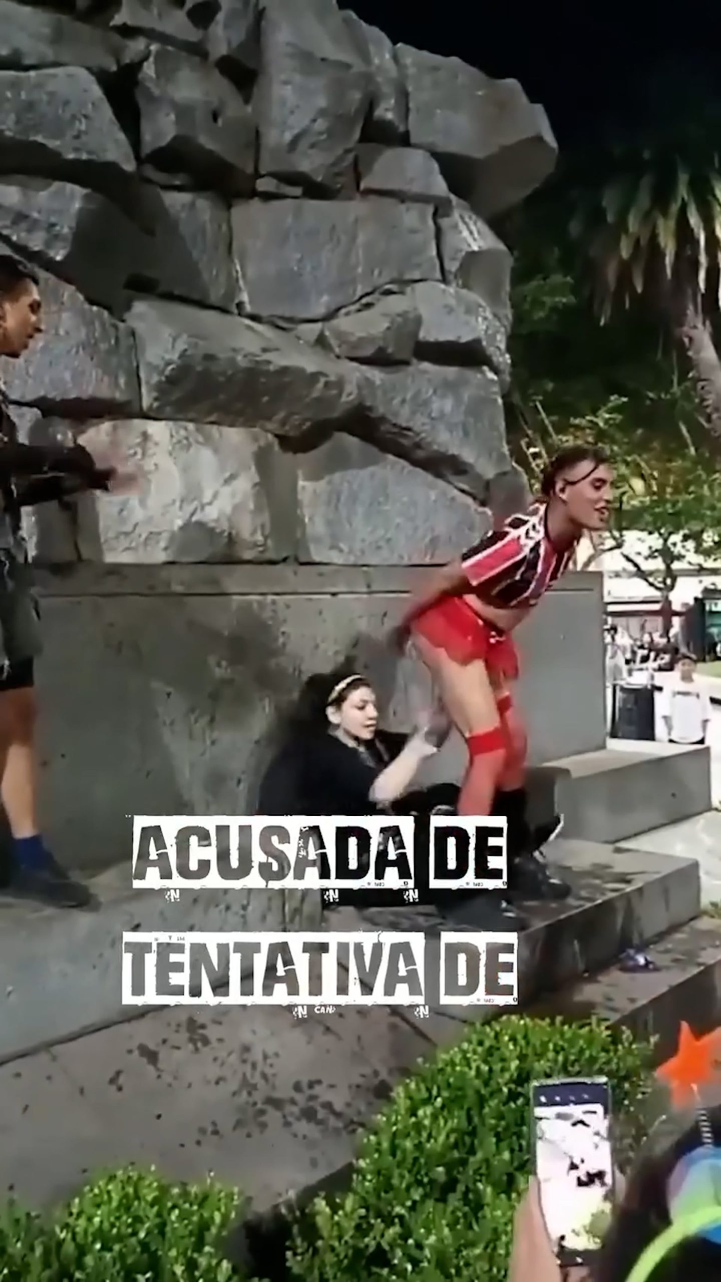 “La imputada viene corriendo entre medio de los LGTB que están en la plaza puteando, tirándole cosas a Yasmín, se levanta la pollera y después trata de ponerle los genitales en la cara. Después, se da vuelta y le trata de apoyar el c… en la cara”, describió el abogado de Arabena, Lucas Santarossa Braillard.