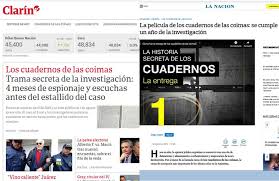 Este jueves (01/08) La Nación y Clarín salieron, al mismo tiempo, con el tema de los ‘Cuadernos de las coimas’. En sus versiones online, ambos medios colocaron como nota principal dicha investigación.